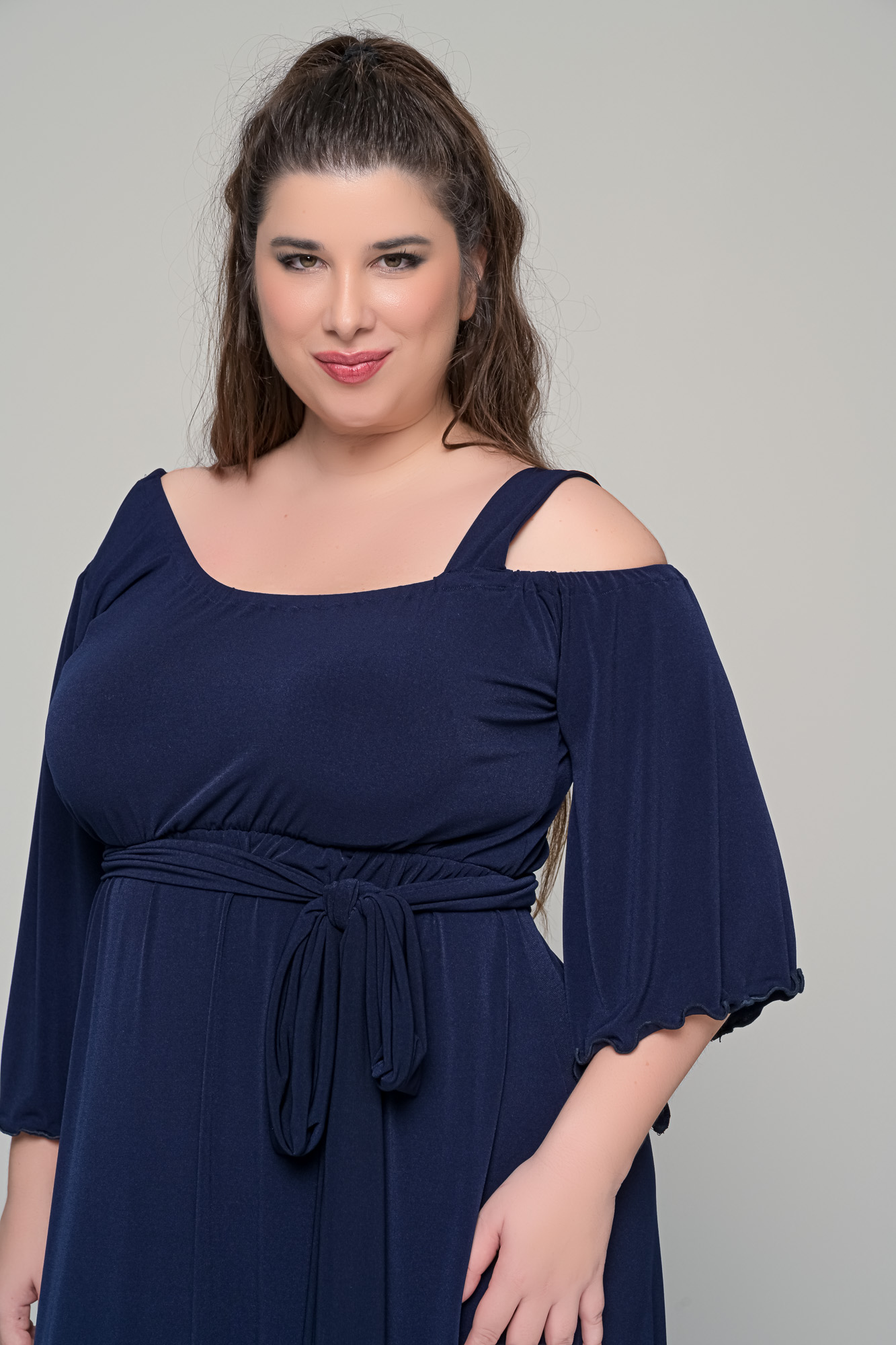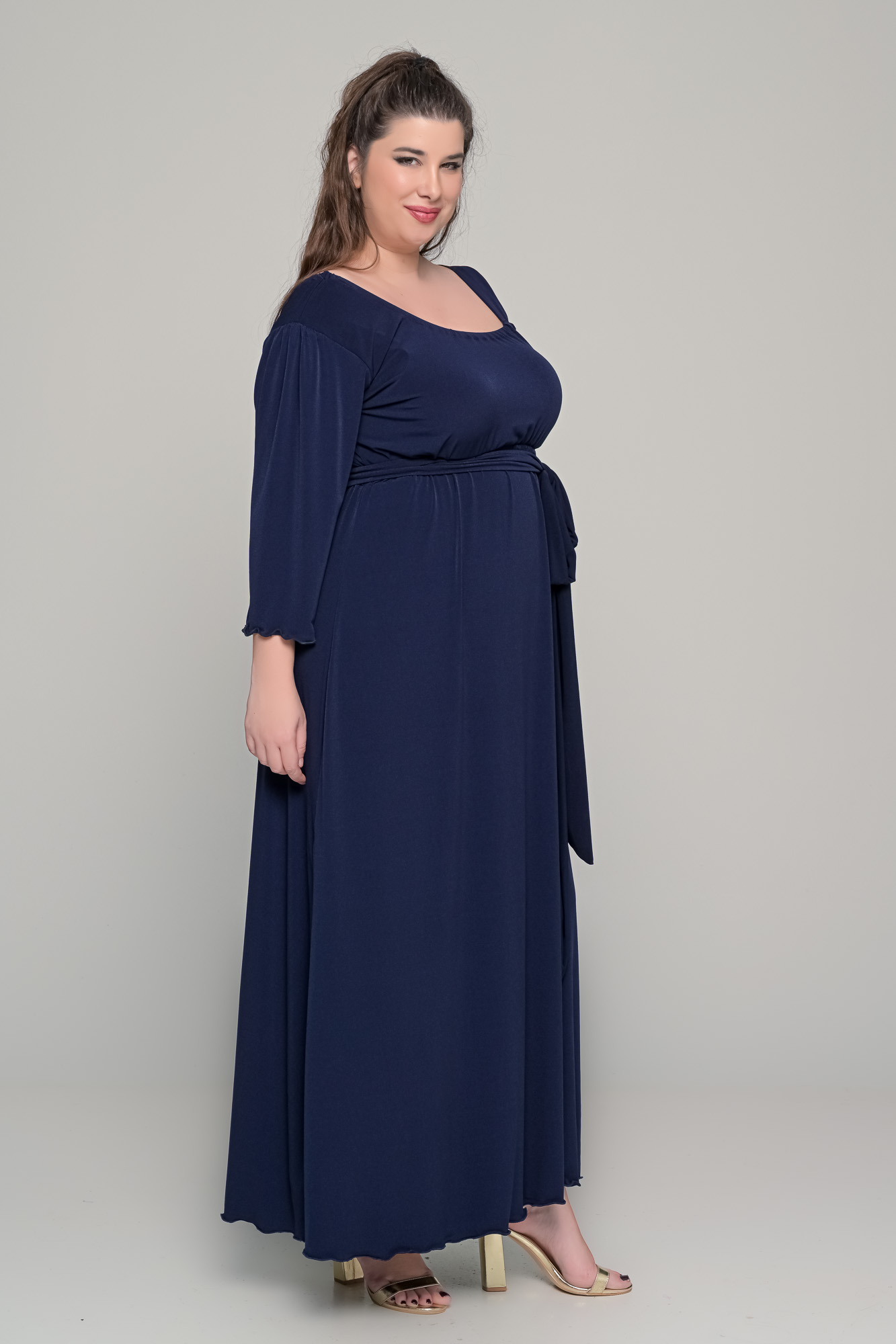 Φόρεμα σε γραμμή αμπίρ σε ελαστικό super jersey – Μπλε σκούρο – Plus size