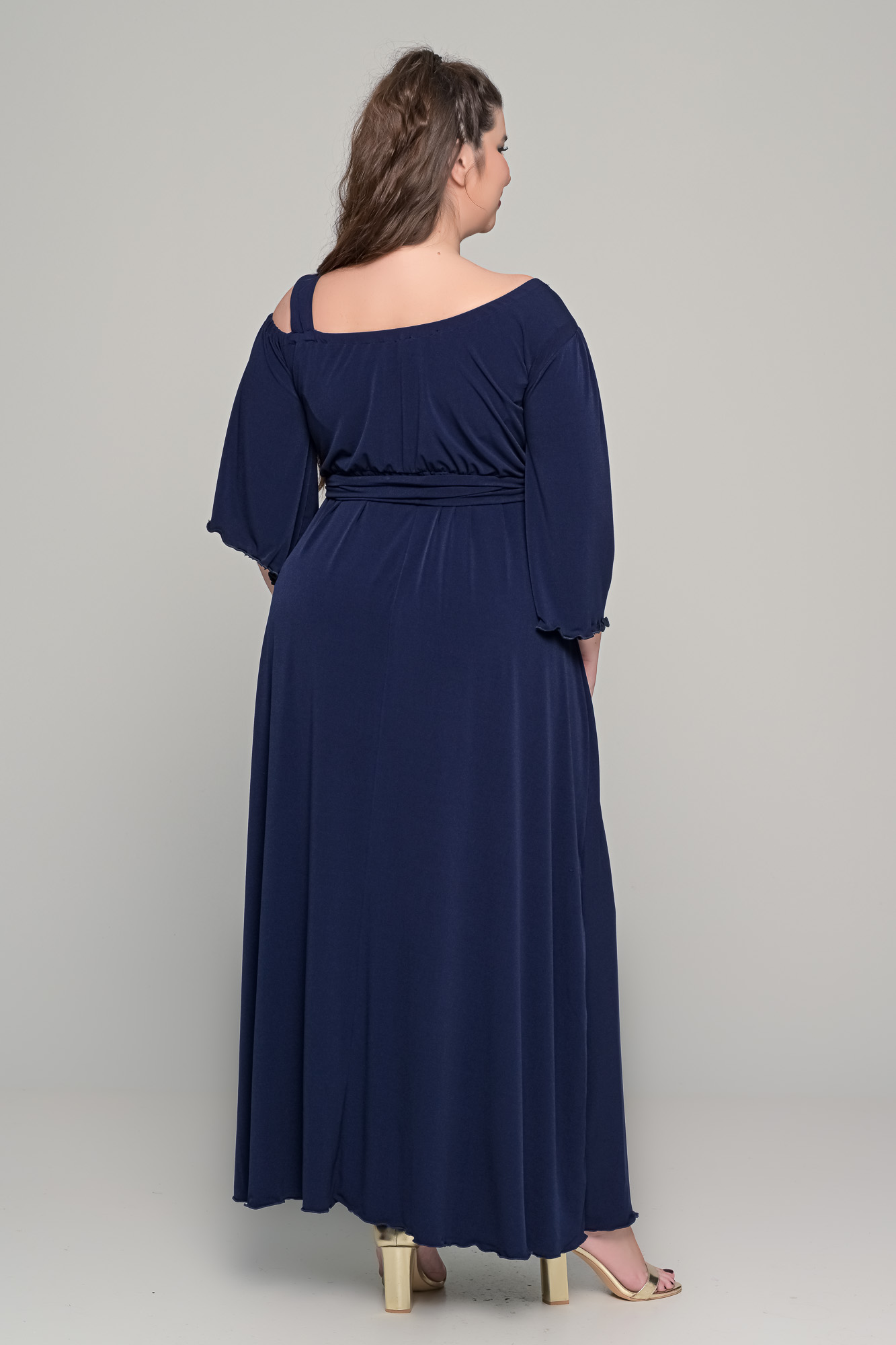 Κομψό maxi φόρεμα σε γραμμή αμπίρ, από ελαστικό super jersey ύφασμα που προσφέρει άνεση και κολακευτική εφαρμογή. Η κολακευτική λαιμόκοψη με διακριτικό άνοιγμα στον έναν ώμο δίνει μοντέρνο χαρακτήρα, ενώ τα μανίκια 3/4 χαρίζουν ισορροπία και κομψότητα. Ιδανικό για γάμο, βάπτιση και κάθε επίσημη περίσταση.