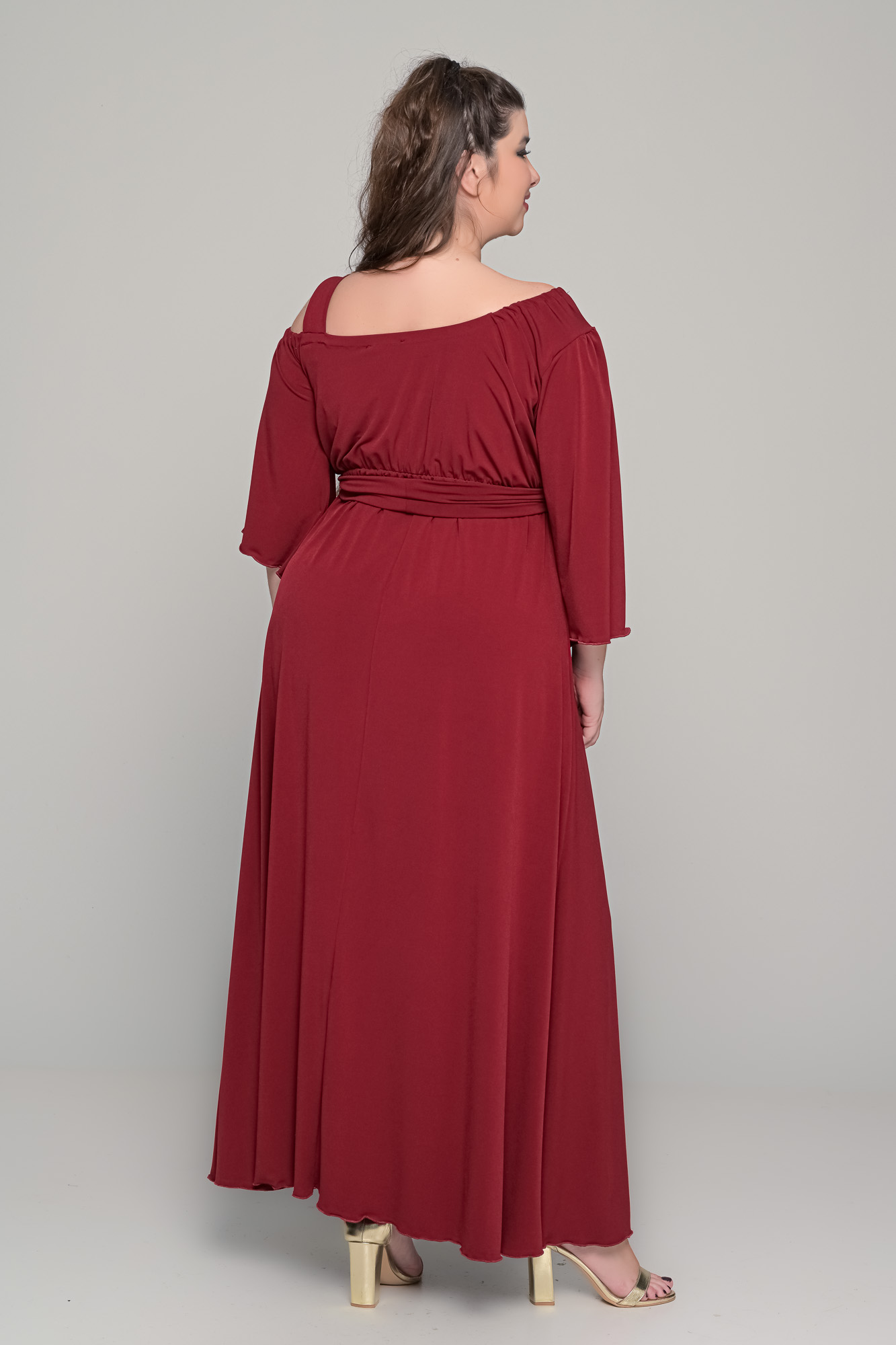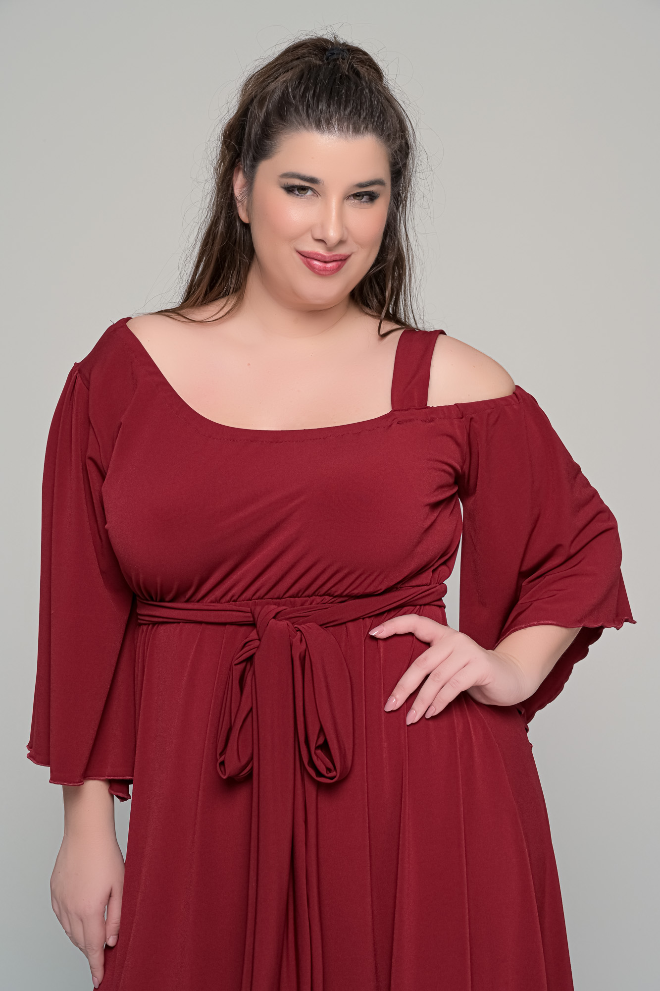 Φόρεμα με αποσπώμενη ζώνη ελαστικό super jersey | Μπορντό | Plus size