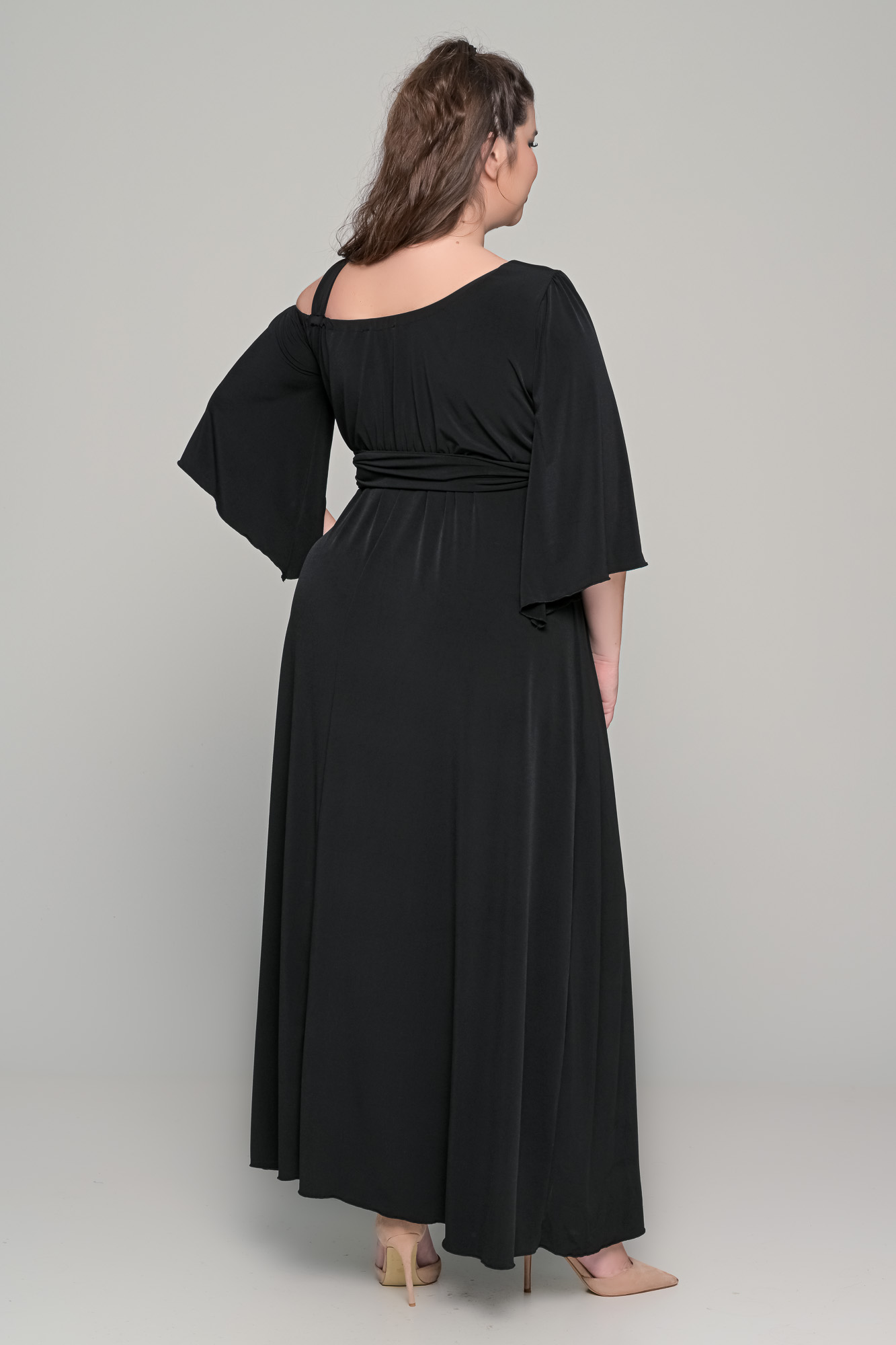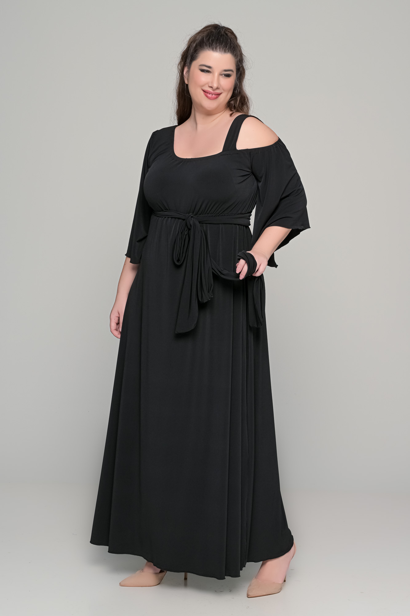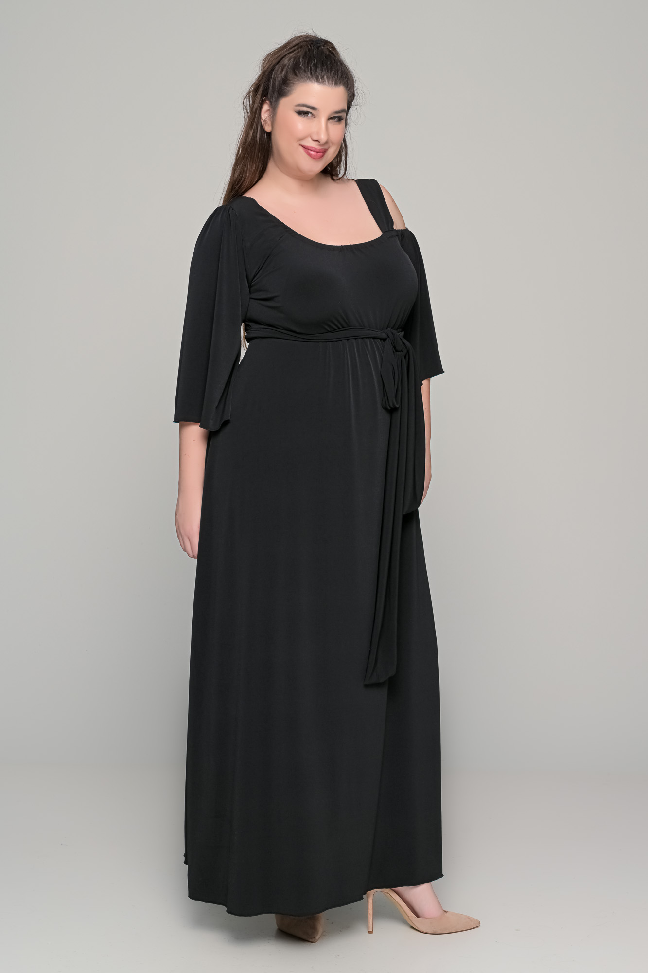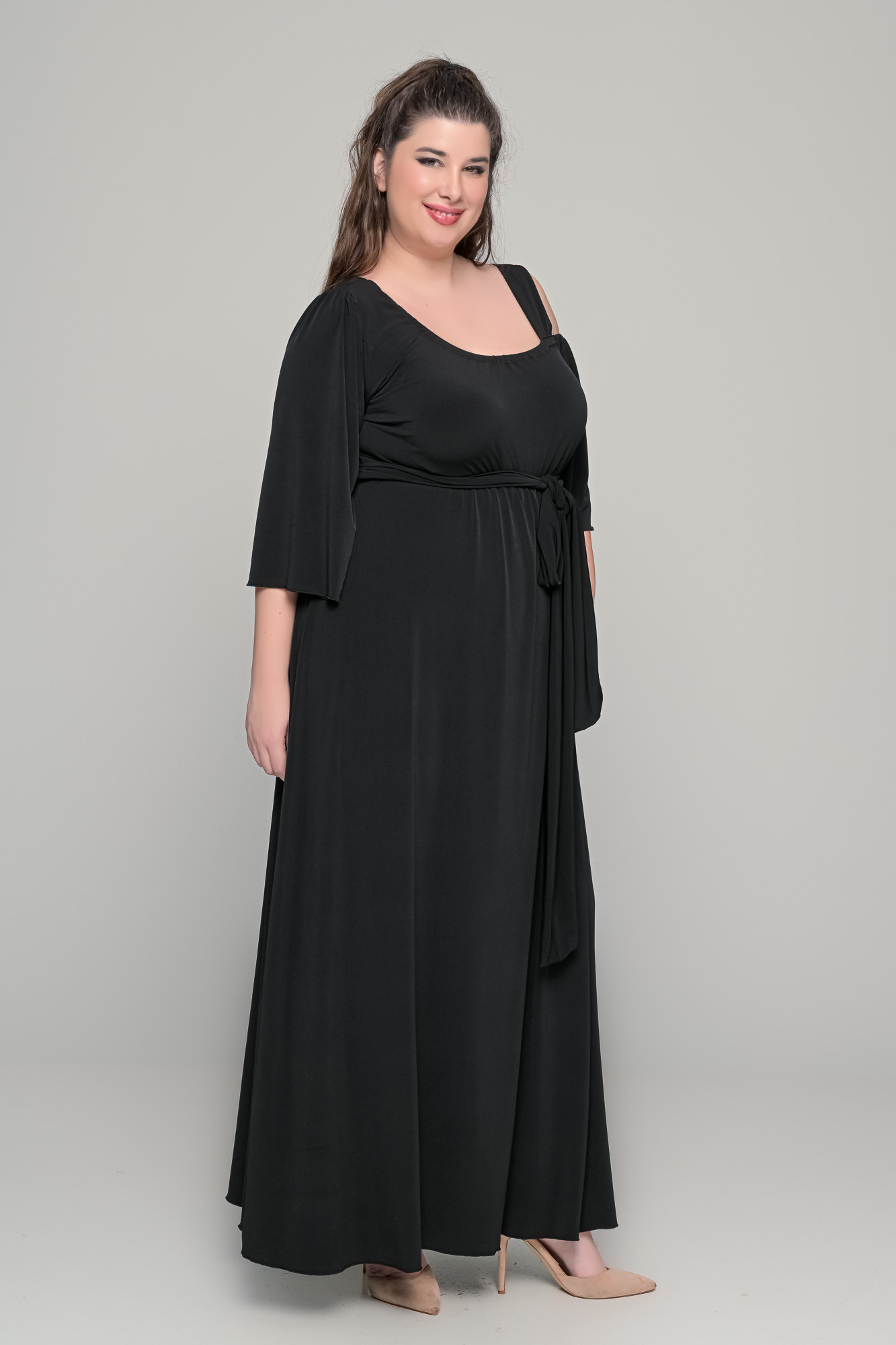 Φόρεμα μονόχρωμο maxi σε ελαστικό super jersey – Μαύρο – Plus Size