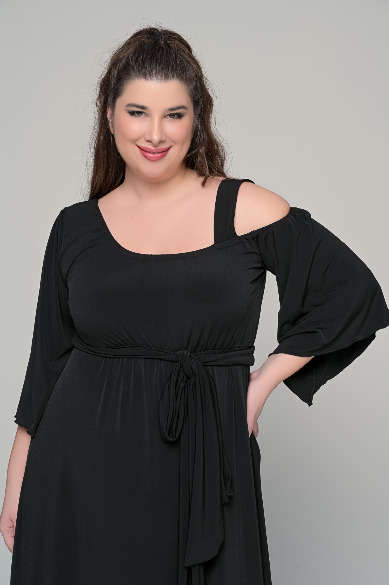 Φόρεμα με αποσπώμενη ζώνη σε ελαστικό super jersey – Μαύρο – Plus size