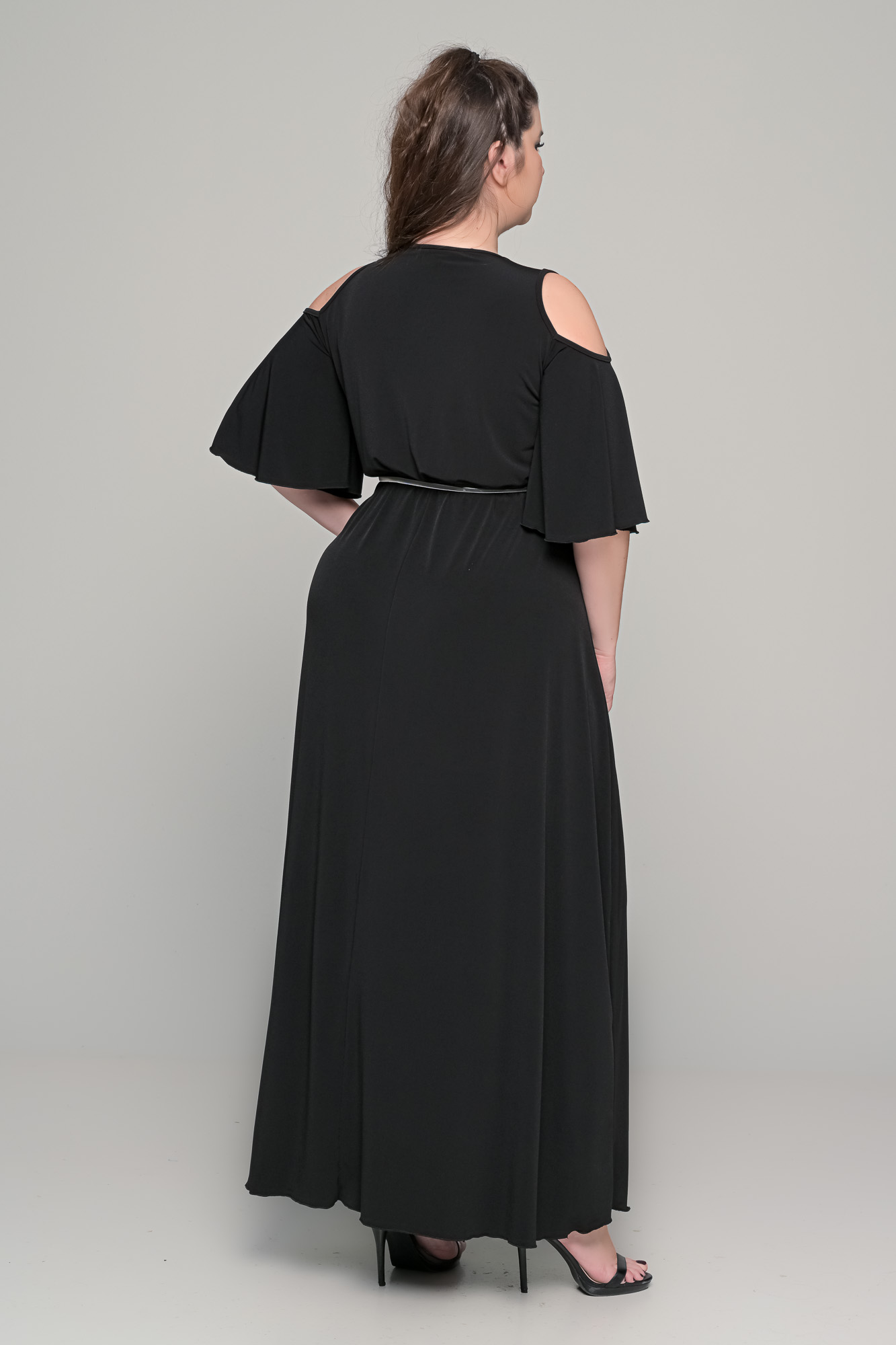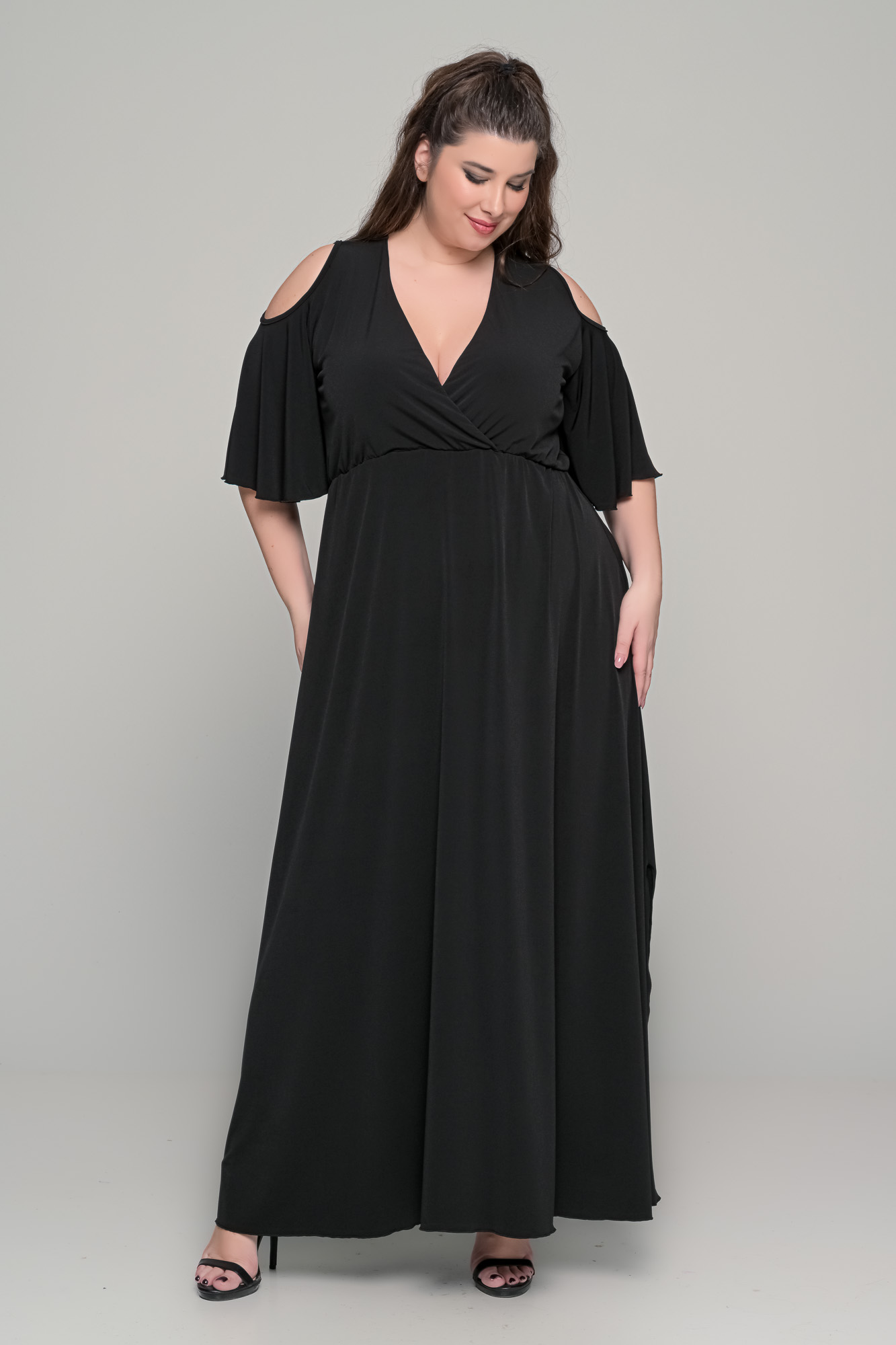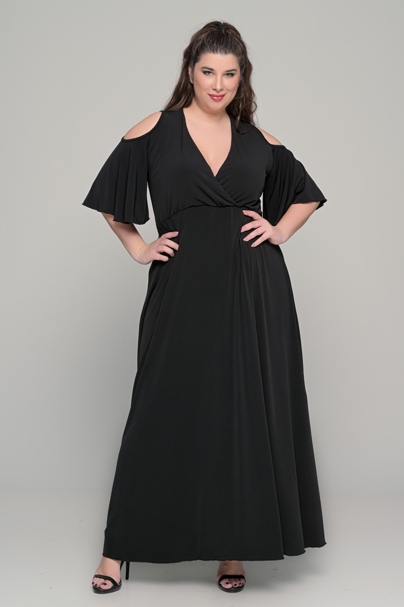 Φόρεμα μονόχρωμο maxi σε ελαστικό super jersey – Μαύρο – Plus Size