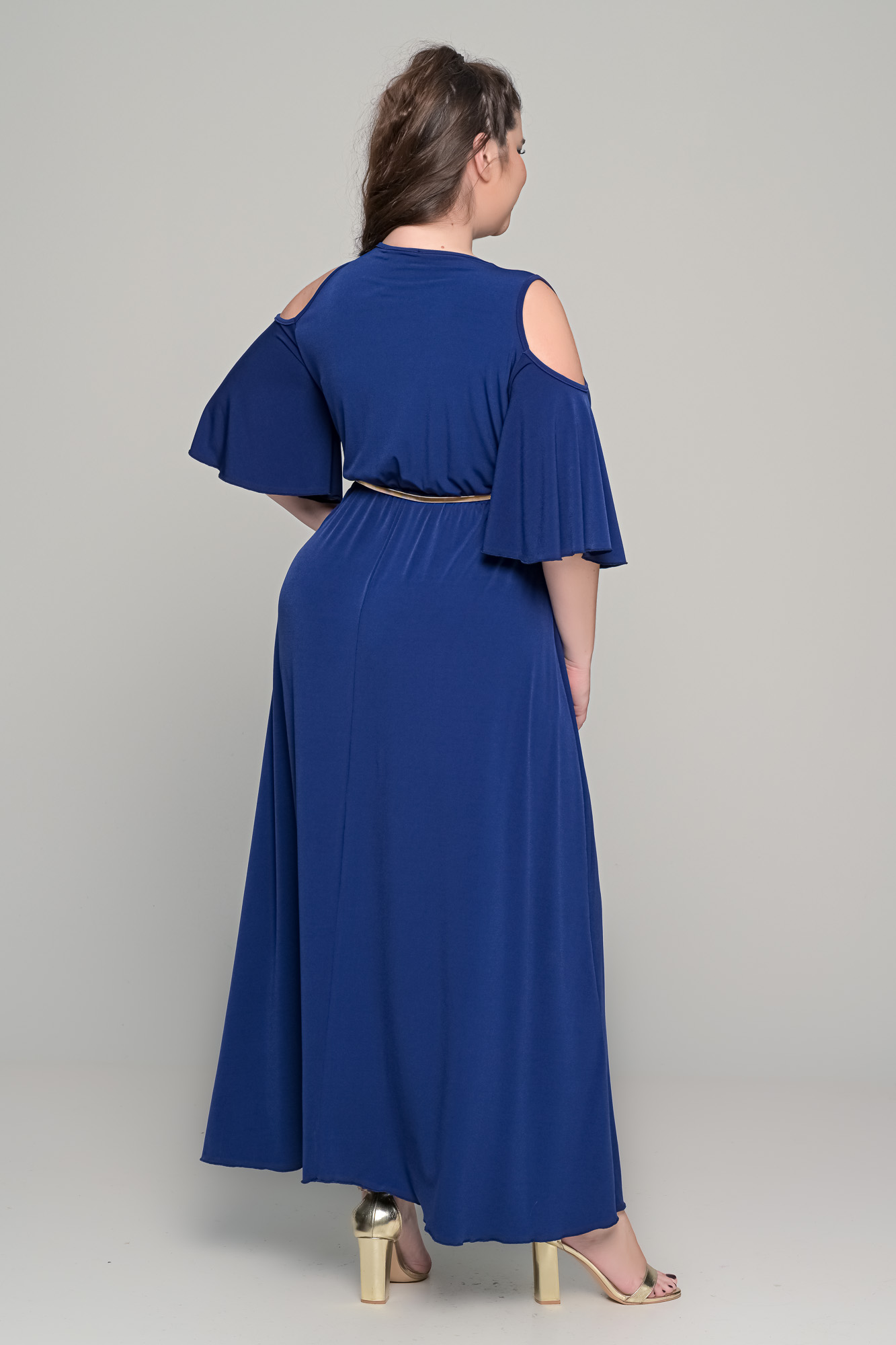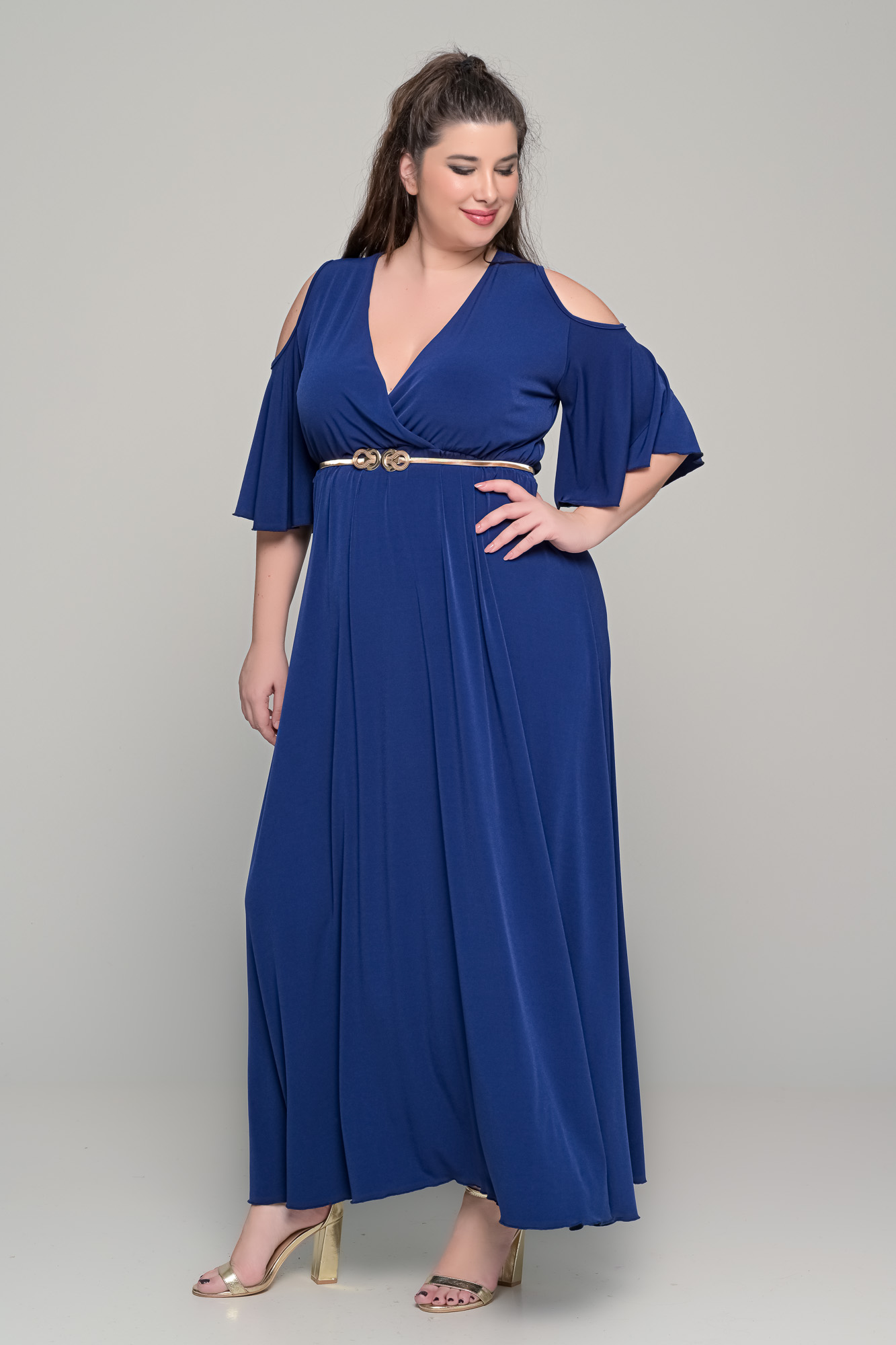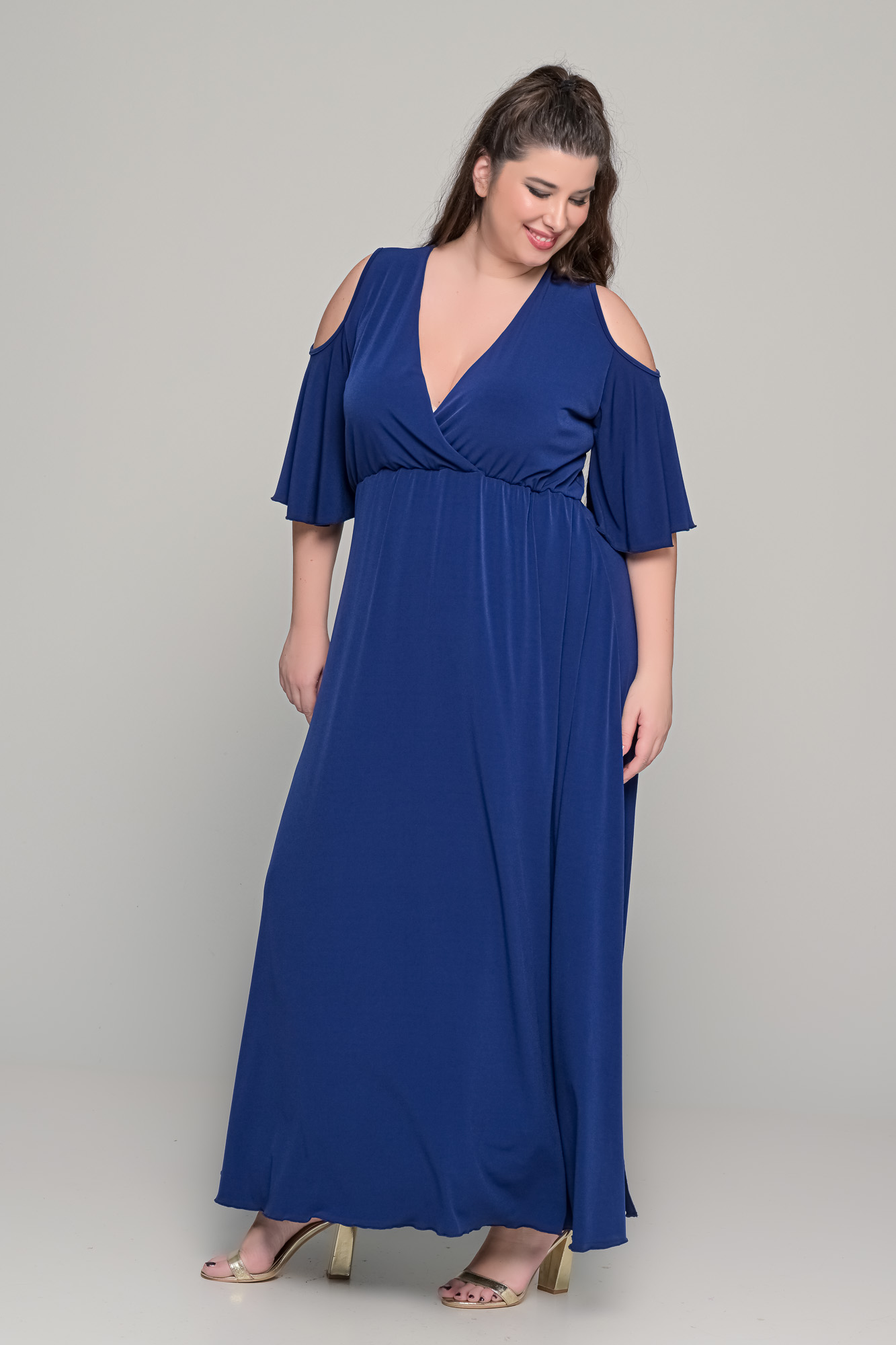 Εντυπωσιακό maxi φόρεμα σε γραμμή αμπίρ, από ελαστικό super jersey ύφασμα που προσφέρει άνεση και άψογη εφαρμογή. Το κρουαζέ μπούστο με V ντεκολτέ αναδεικνύει το στήθος, ενώ η αμπίρ γραμμή του κολακεύει τη σιλουέτα και χαρίζει κομψό, θηλυκό αποτέλεσμα. Τα μανίκια με άνοιγμα στους ώμους προσδίδουν μοντέρνα πινελιά. Ιδανικό για γάμο, βάπτιση, επίσημη έξοδο αλλά και ιδιαίτερες περιστάσεις.