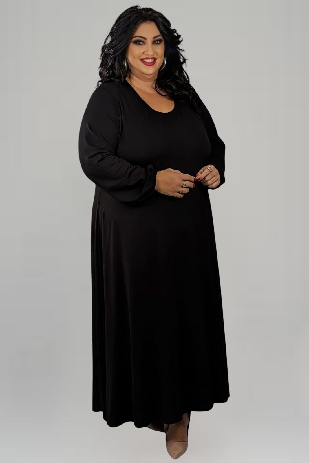 Φόρεμα κρουαζέ maxi σε ελαστικό super jersey – Μαύρο – Plus Size