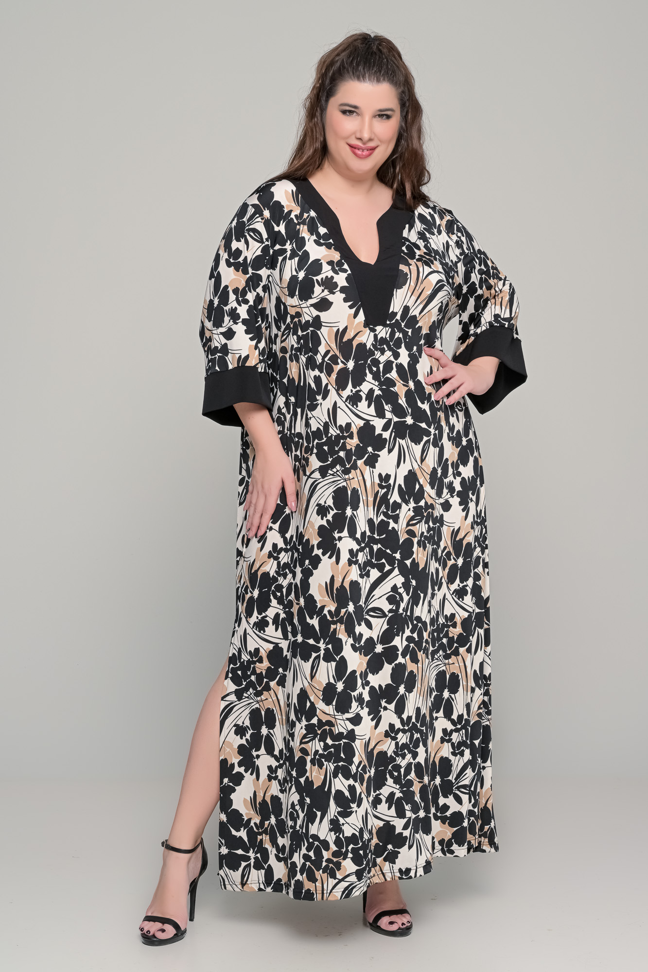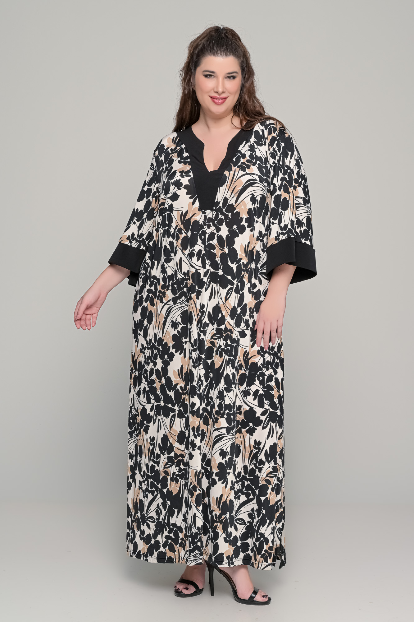 Φόρεμα καφτάνι με μισοφόρι σε εμπριμέ ζορζέτα – Plus Size