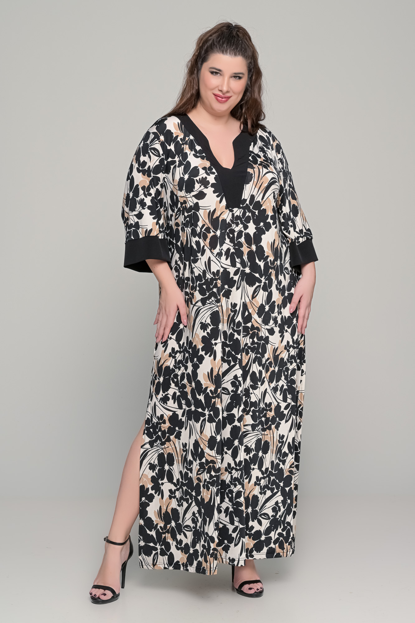 Φόρεμα καφτάνι με μισοφόρι σε εμπριμέ ζορζέτα – Plus Size