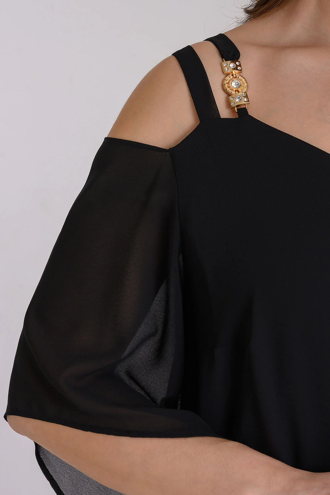 Φόρεμα μουσελίνα με χρυσή λεπτομέρεια | Μαύρο | Plus Size