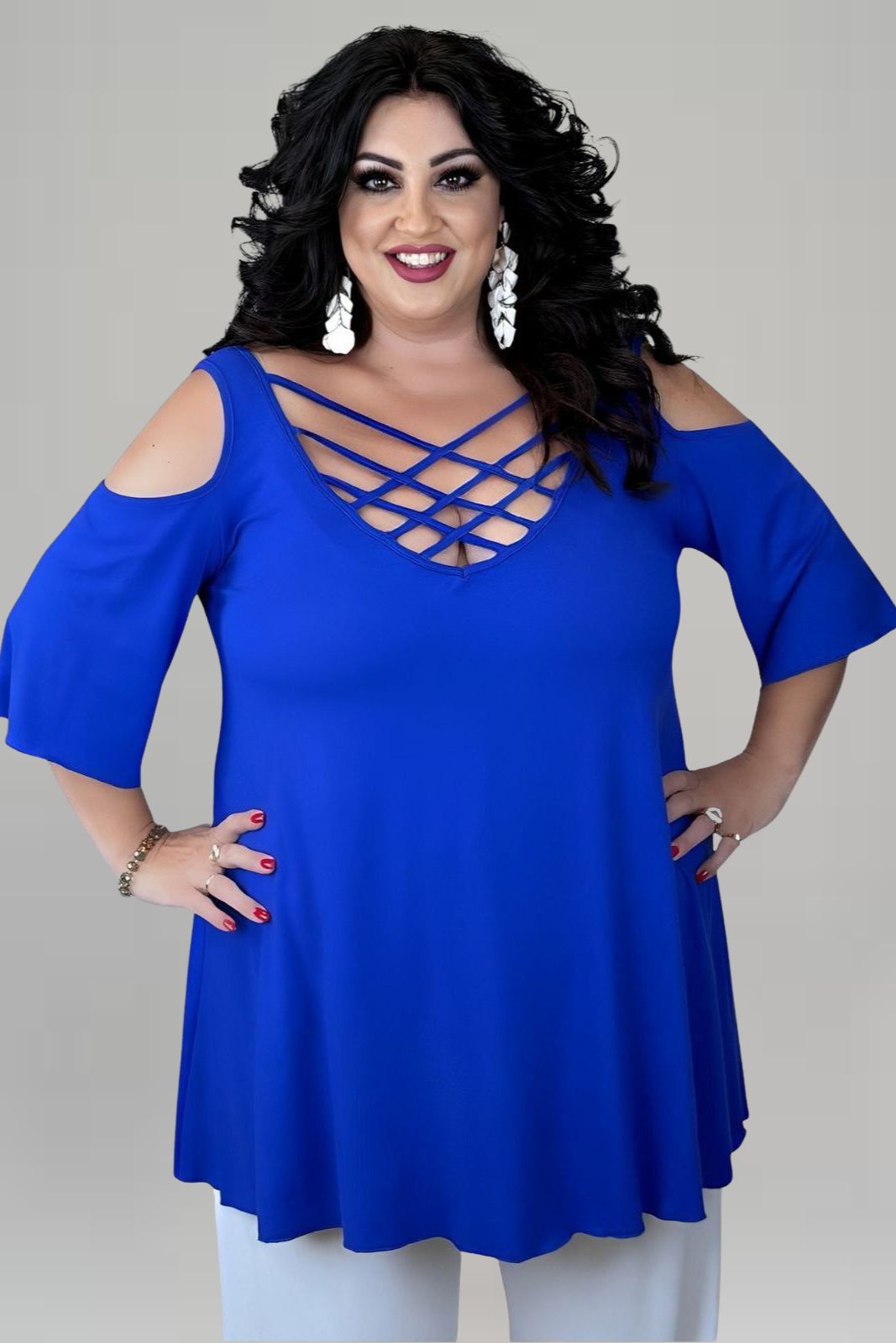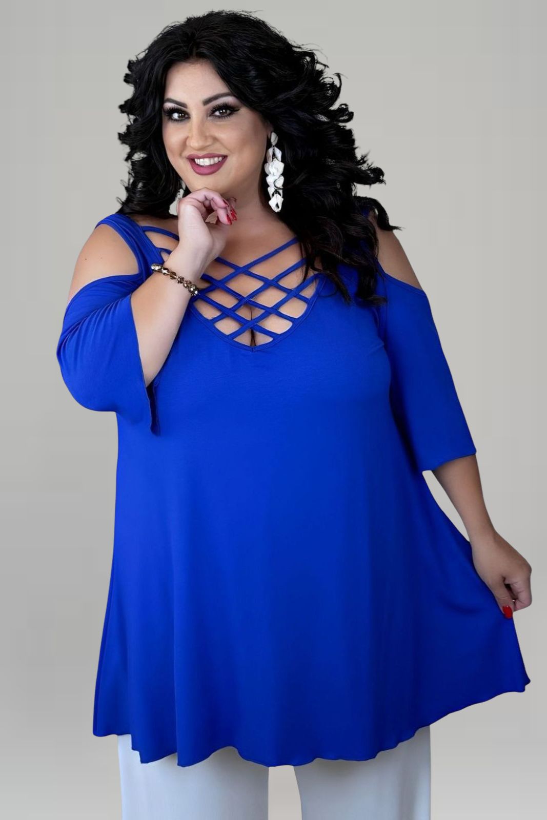 Μπλούζα με χιαστί ντεκολτέ σε ελαστική βισκόζη – Κυπαρισσί – Plus Size