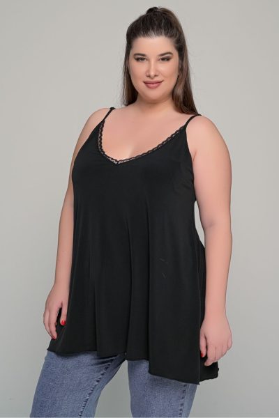 Θηλυκό τοπ με διακριτική δαντελένια λεπτομέρεια στο μπούστο, ιδανικό για όλες τις ώρες της ημέρας. Προσφέρει άνετη εφαρμογή που δεν κολλάει στο σώμα, με εξαιρετική εφαρμογή στο στήθος χωρίς να διαφανίζει.