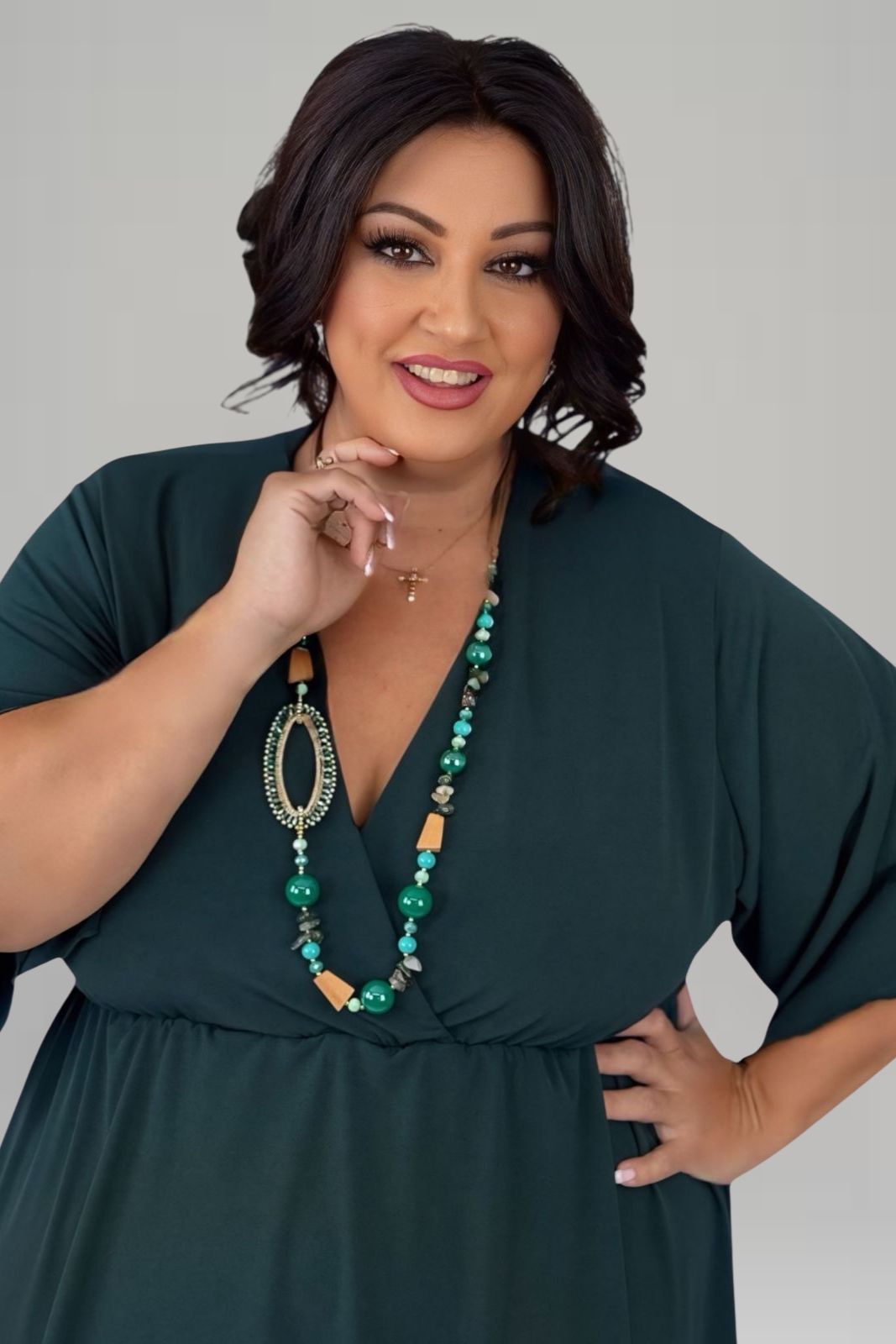 Κομψή μπλούζα με κρουαζέ κόψιμο που κολακεύει το ντεκολτέ, ιδανική για όλες τις ώρες της ημέρας. Διαθέτει άνετη εφαρμογή που δεν κολλάει στο σώμα, μανίκια που καλύπτουν πλήρως το μπράτσο και λεπτό λάστιχο στη μέση για διακριτική εφαρμογή. Μακρύ μήκος που καλύπτει την κοιλιά.