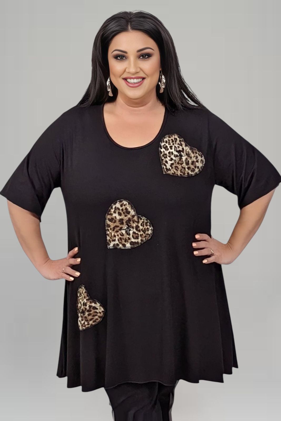Μπλούζα με χειροποίητο μοτίφ ελαστική βισκόζη | Μαύρο | Plus Size