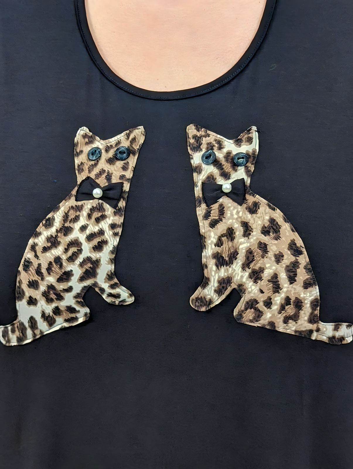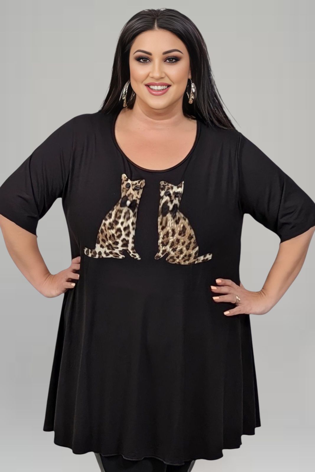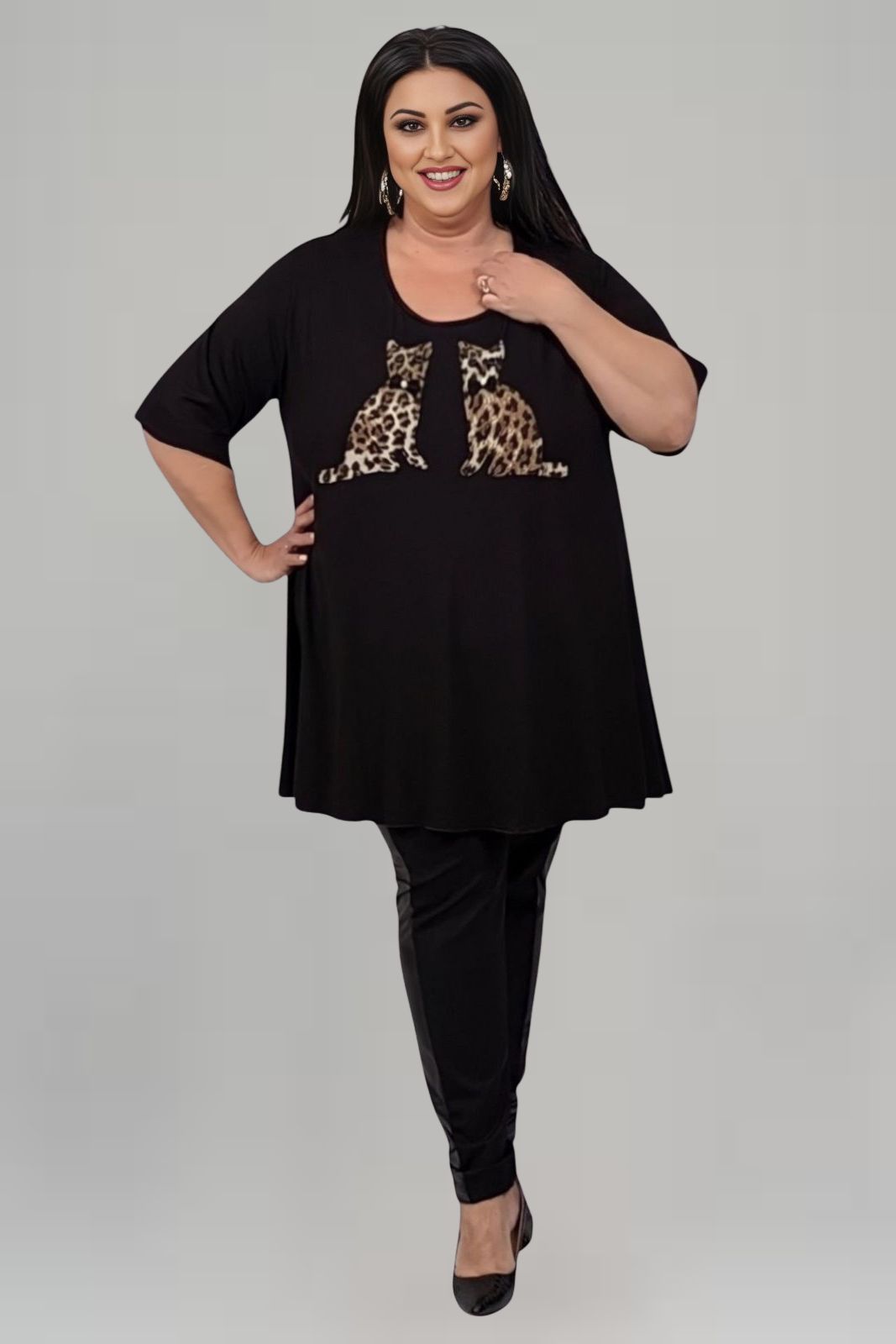 Μπλούζα με γατούλες ελαστική βισκόζη | Μαύρο | Plus Size |