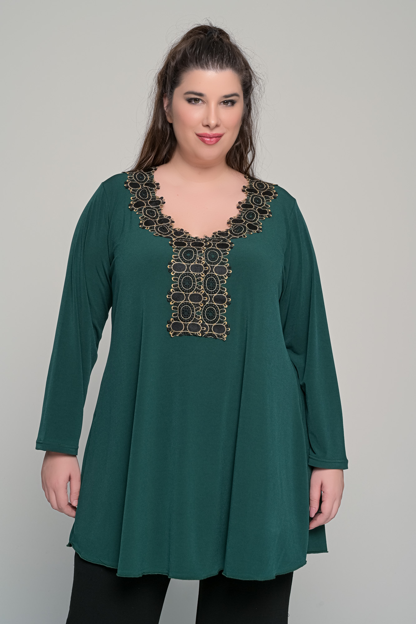 Μπλούζα με χρυσή τρέσα στο ντεκολτέ σε ελαστικο super jersey | Κυπαρισσί | Plus Size
