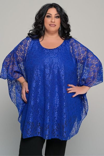 Μπλούζα με διπλό λουλούδι σε ελαστική βισκόζη | Μπλε ηλεκτρίκ | Plus Size