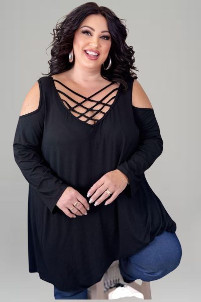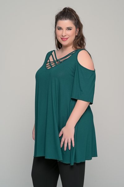 Μπλούζα με χιαστί ντεκολτέ σε ελαστική βισκόζη – Κυπαρισσί – Plus Size