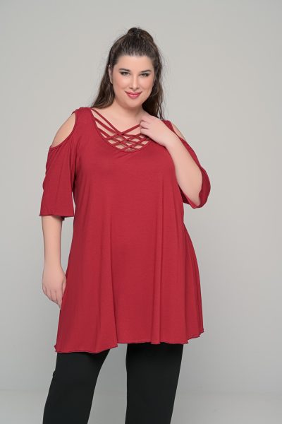 Μπλούζα με χιαστί ντεκολτέ σε ελαστική βισκόζη | Μπορντό | Plus Size