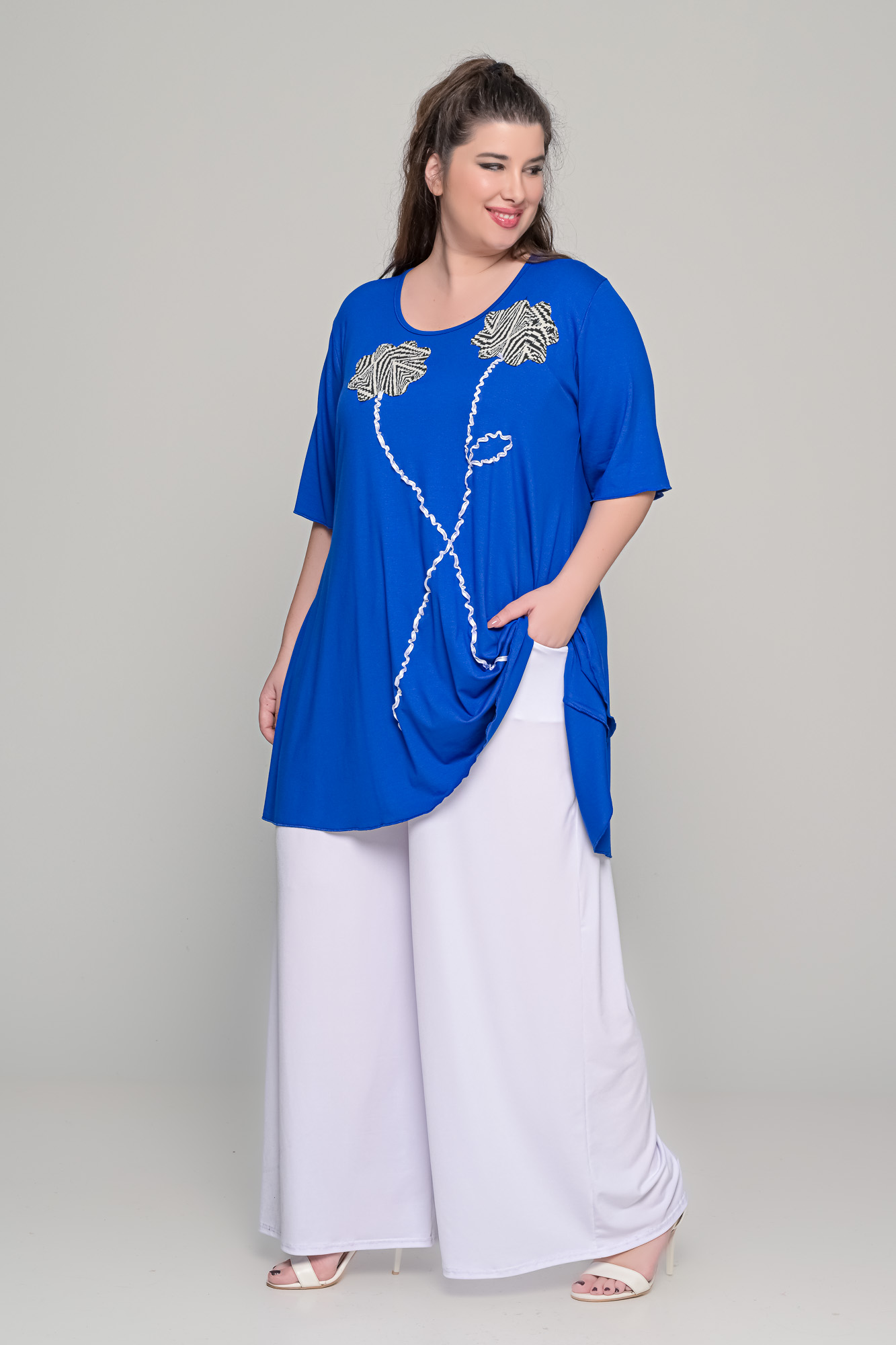 Μπλούζα με διπλό λουλούδι σε ελαστική βισκόζη | Μπλε ηλεκτρίκ | Plus Size