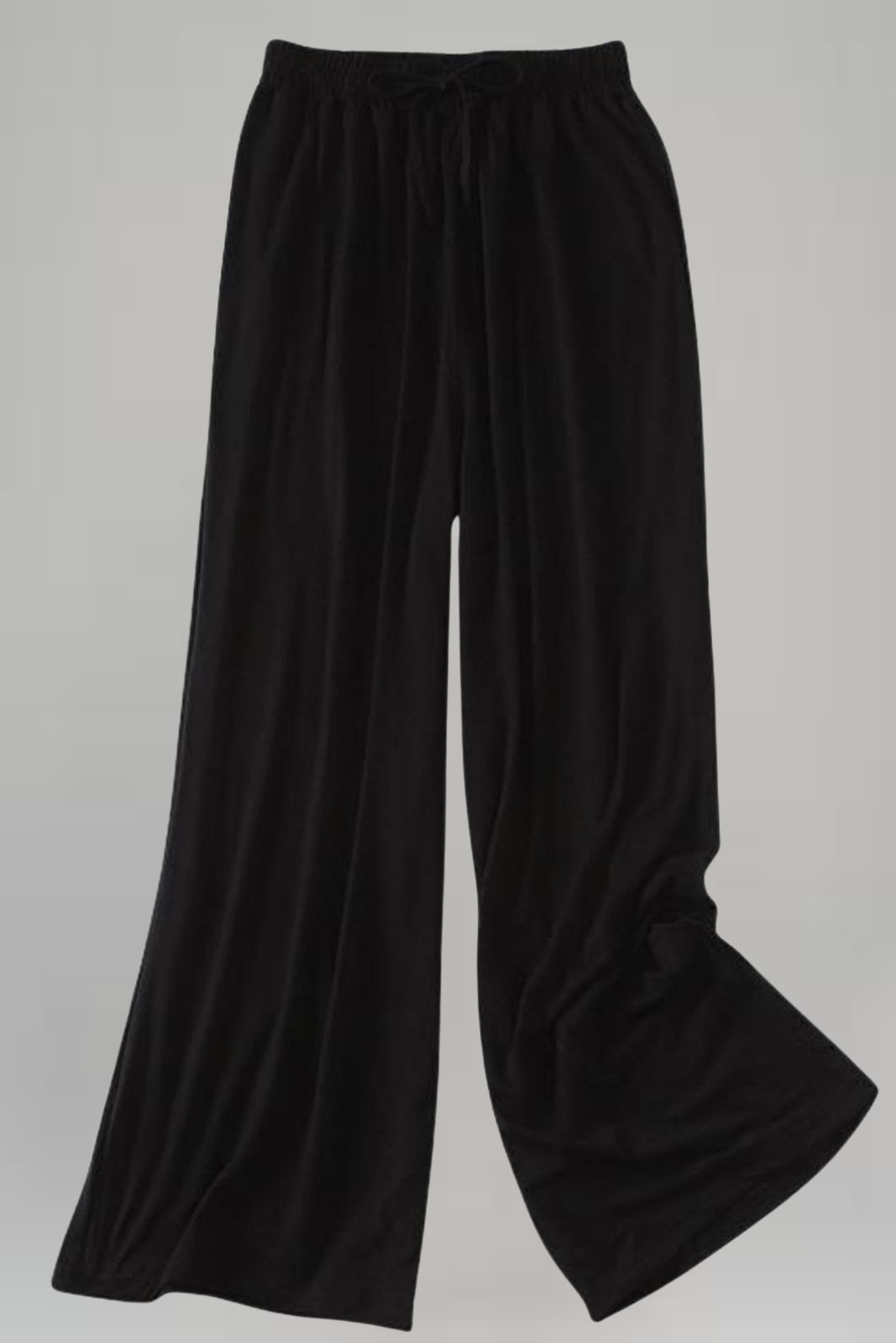 Μαύρη παντελόνα από ελαστικό super jersey ύφασμα, ιδανική για άνεση όλη μέρα. Σε χυτή, ριχτή γραμμή που δεν κολλάει στο σώμα και προσφέρει ελευθερία κινήσεων. Ένα βασικό κομμάτι γκαρνταρόμπας που συνδυάζεται εύκολα με μπλούζες, πουκάμισα για καθημερινά και πιο προσεγμένα looks.