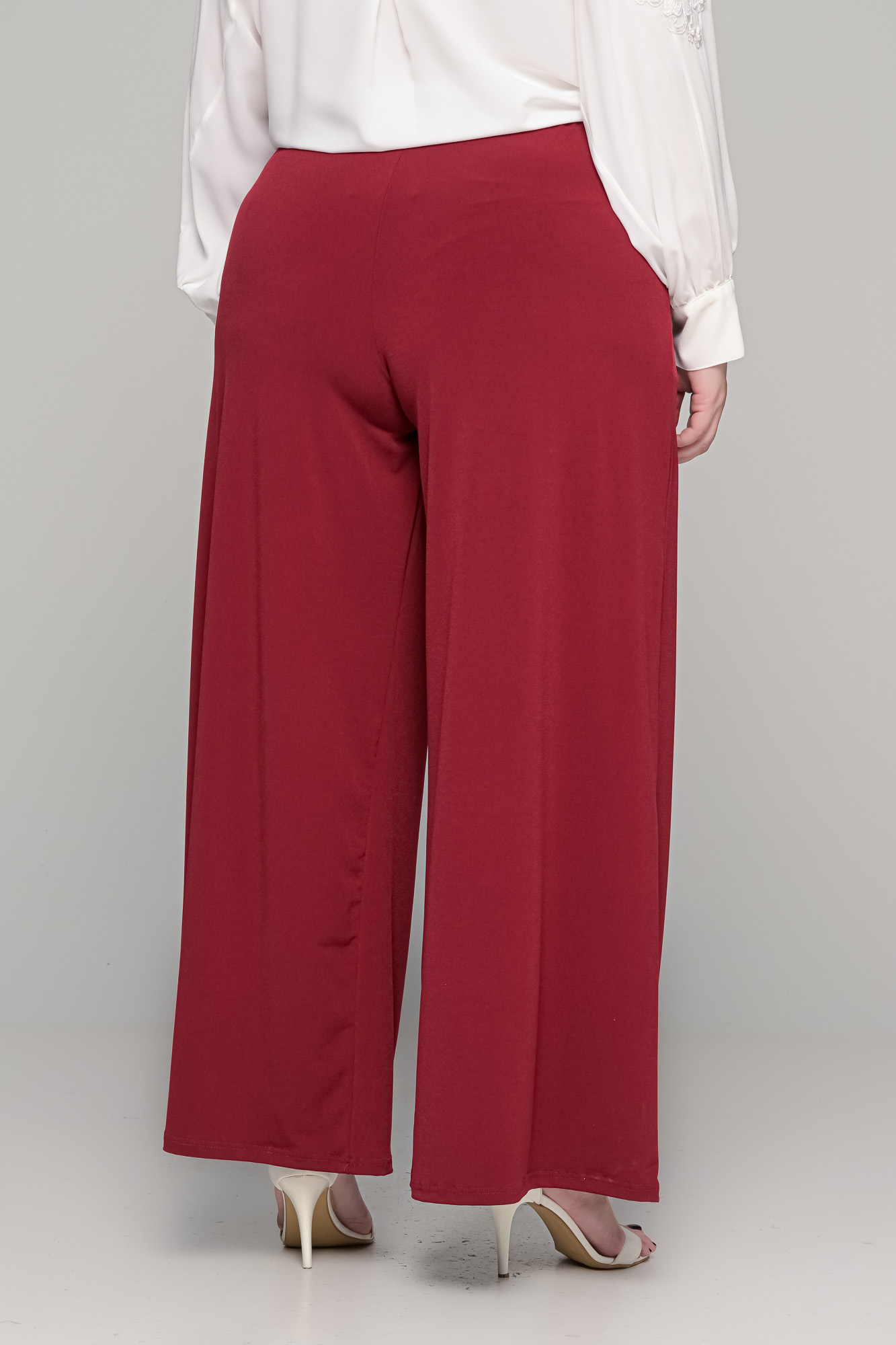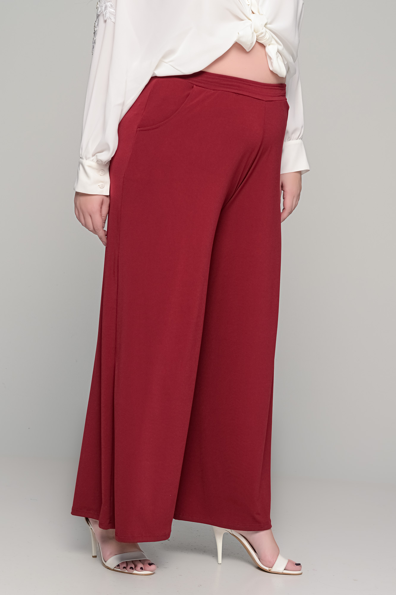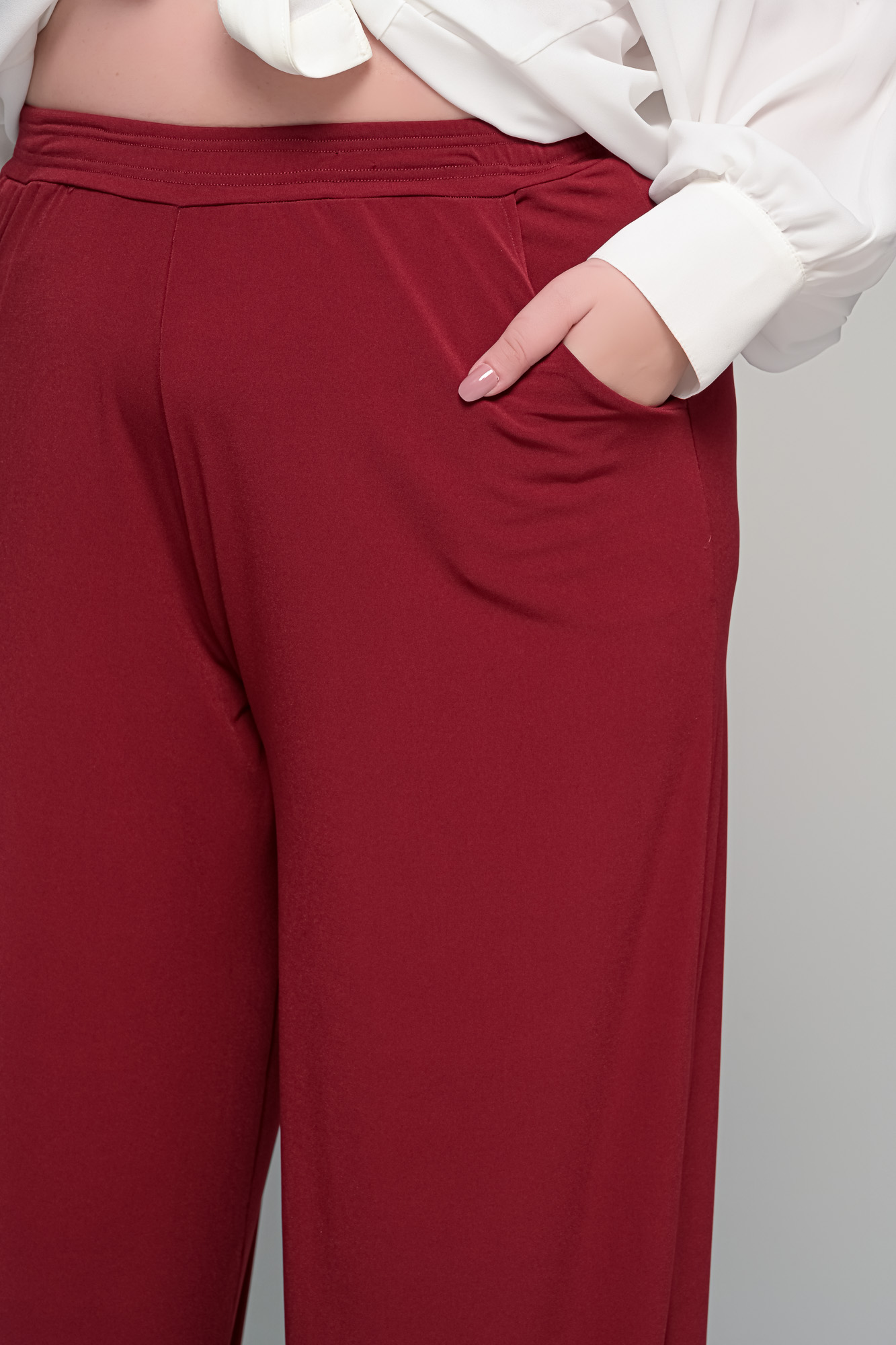 Παντελόνα με τσέπες σε ελαστικό super jersey – Μπορντό – Plus size